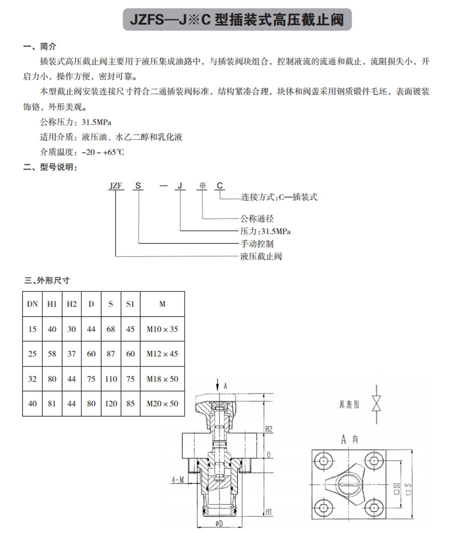 JZFS型高壓液壓截止閥